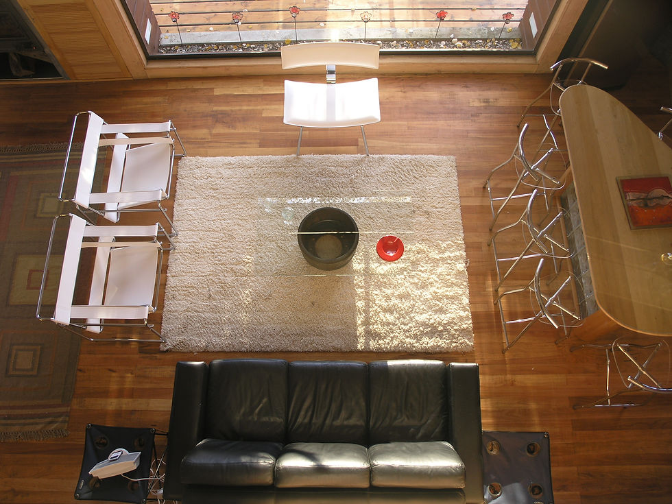 su torreón como el espacio central. Este cumple diversas funciones; captar la luz solar, asomarse sobre el estar, comunicar los niveles y
